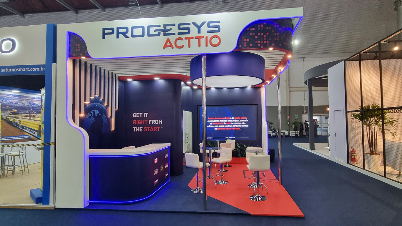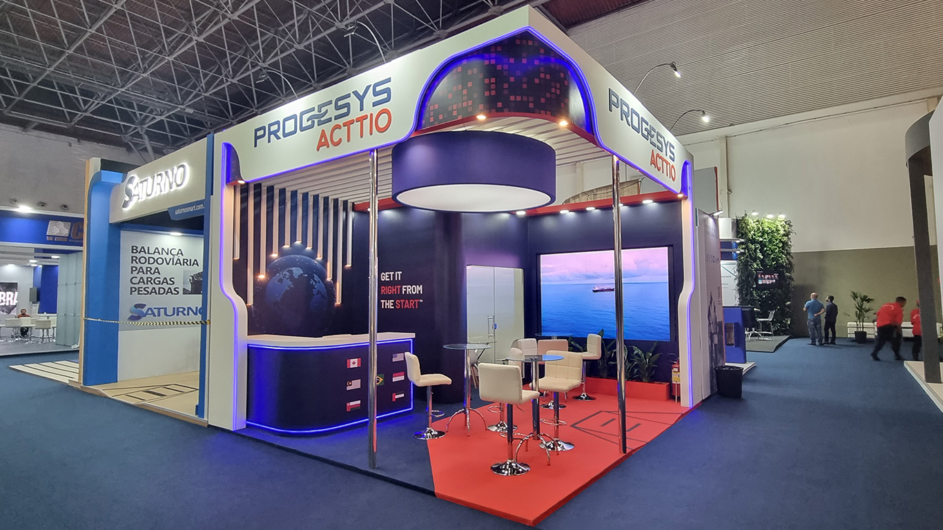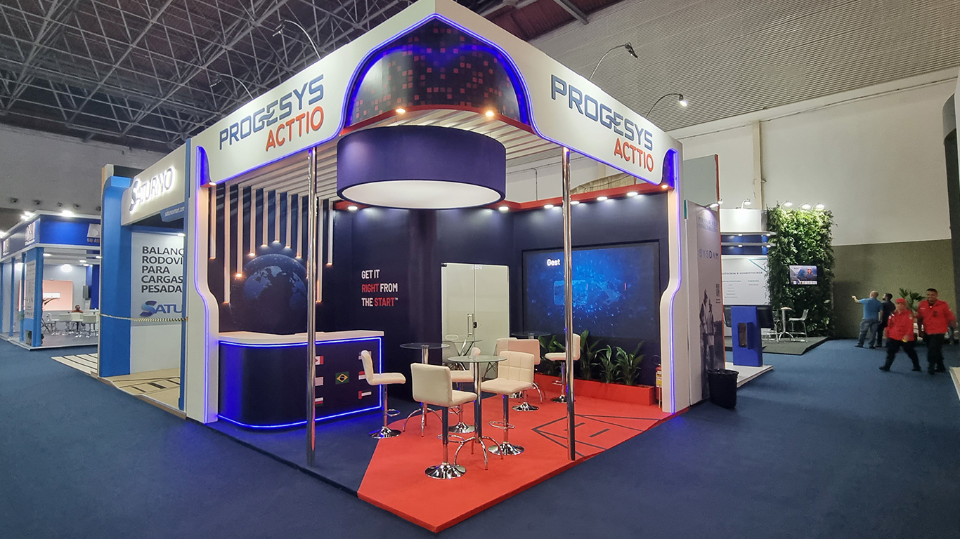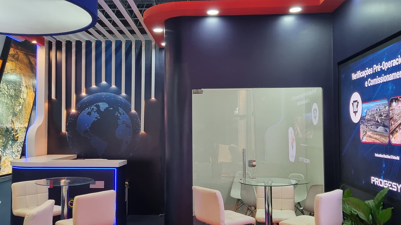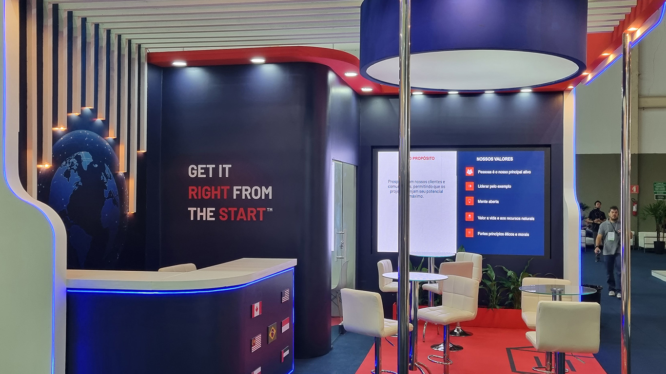 Stand construído em madeira com acabamento em pintura.